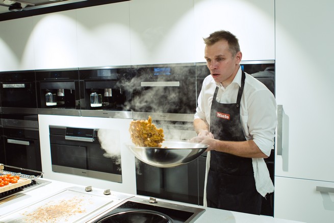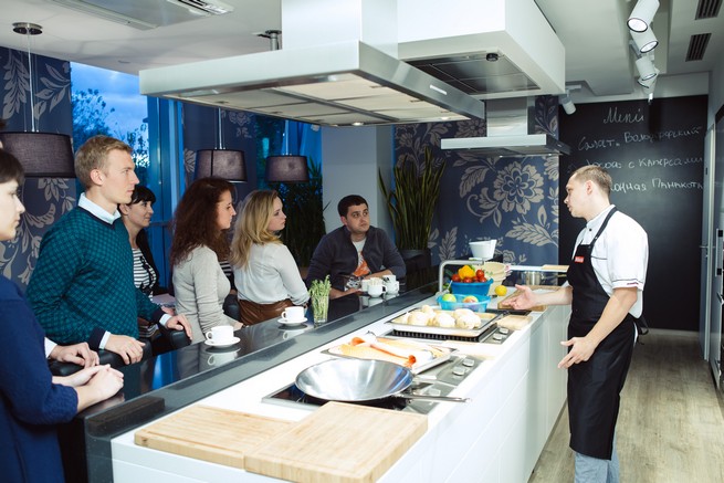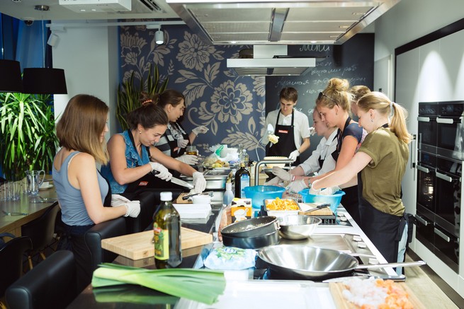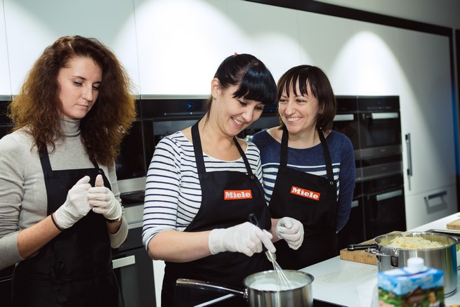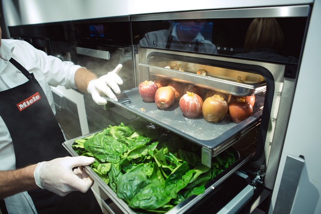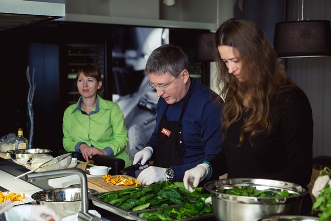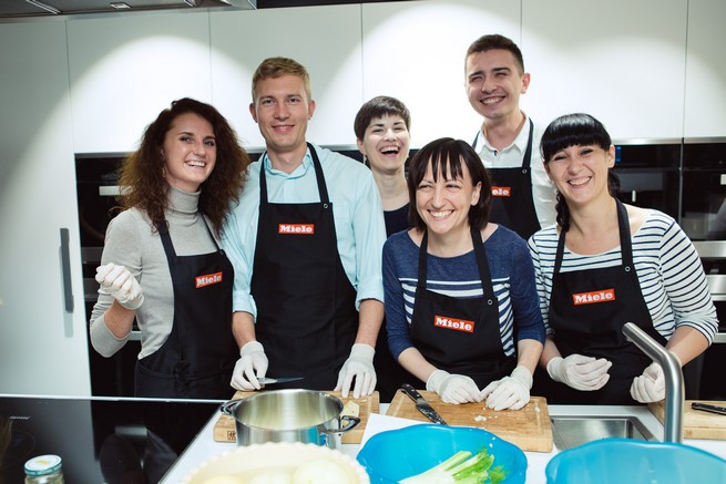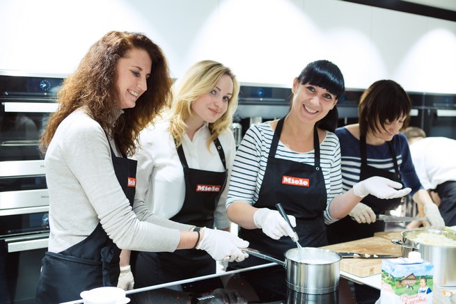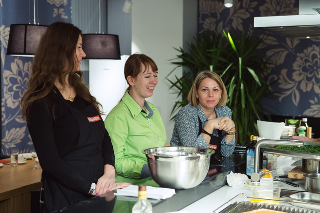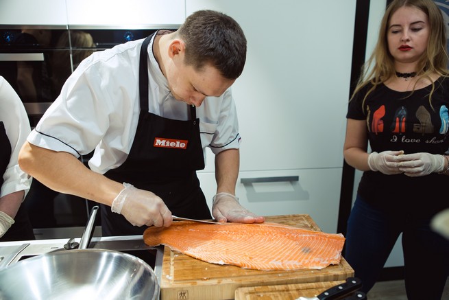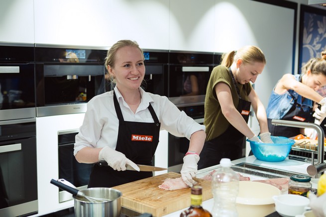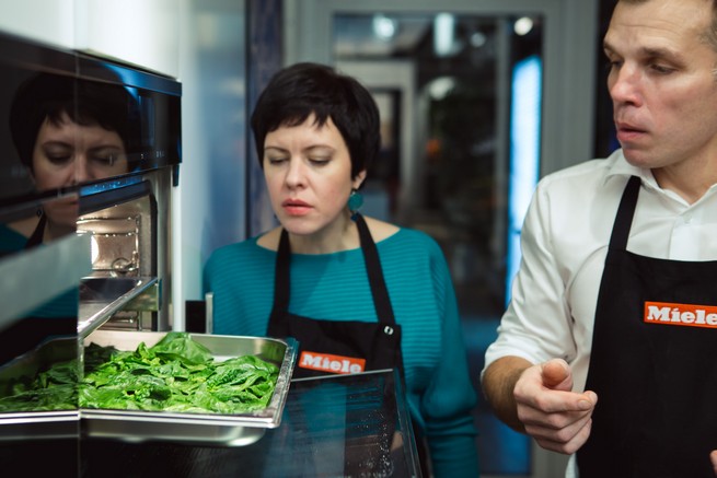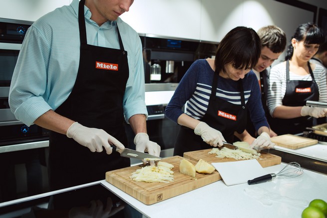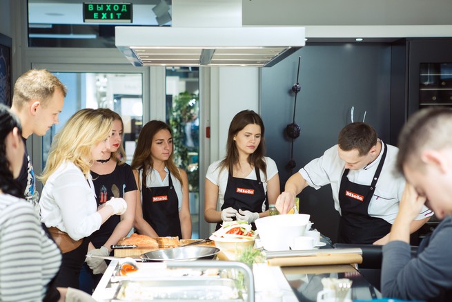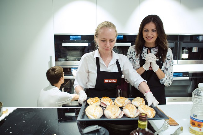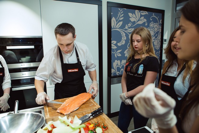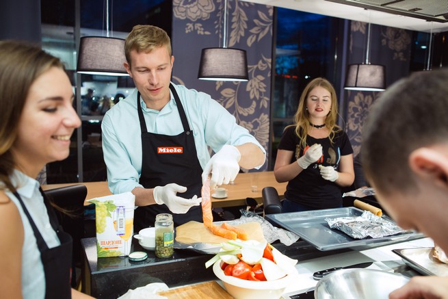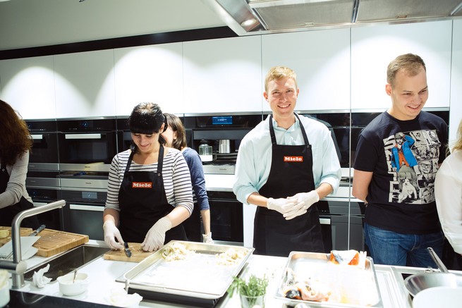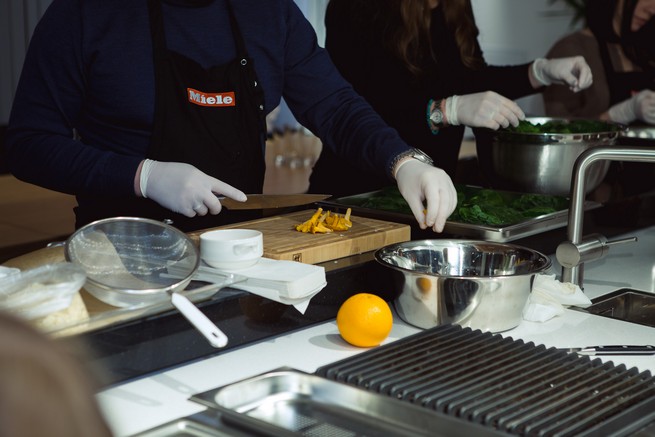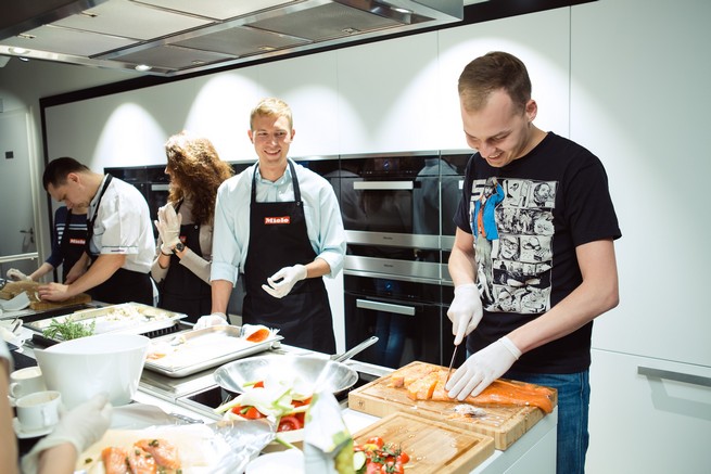 8 сентября совместно с брендом Miele мы провели особенный кулинарный мастер-класс для читателей PSYCHOLOGIES. Участники этого мероприятия учились готовить блюда, идеально подходящие для домашнего осеннего вечера, на кухне Miele, оборудованной по последнему слову техники, под руководством опытного повара. В меню вечера: вальдорфский салат, лосось с каперсами, лимоном и розмарином с овощами гриль, а также лимонная панакота на десерт.