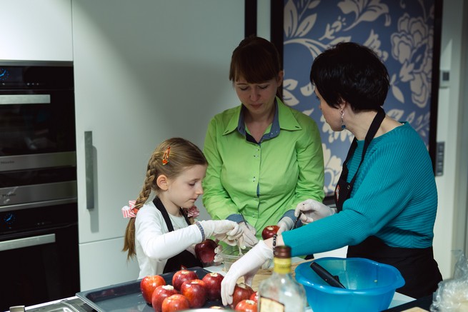 13 октября совместно с брендом Miele мы провели детский кулинарный мастер-класс для читателей PSYCHOLOGIES. Участники этого мероприятия и их дети в игровой форме учились готовить блюда на кухне Miele, оборудованной по последнему слову техники, под руководством опытного повара. В меню вечера: корзиночки с креветками и рукколой, окунь со шпинатом и рис с лисичками, а на десерт - печеное яблоко с марципаном. Спасибо огромное всем участникам! Следующий мастер-класс с новой интересной темой уже скоро! Следите за обновлениями!